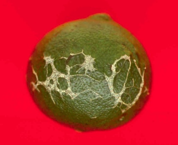 ◦ 피해 흔적은 초기에는 잘 보이지 않으며, 과실이 비대하면서 긁힌 부위가 돌출되고 은회색으로 변함