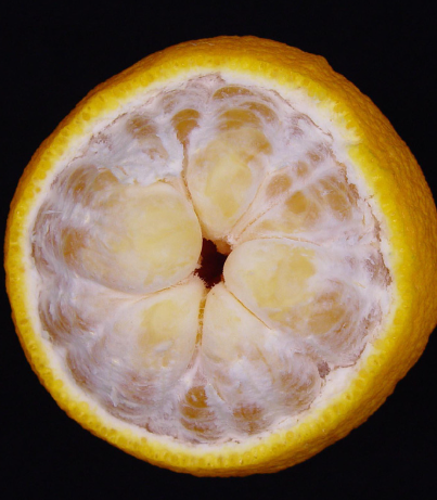 ◦ (과잉) 과일 껍질의 착색이 늦어지고 과피 두께가 두꺼워지며, 부피과(과육과 과피 사이의 빈 공간이 생김)의 발생이 많고 부지화에서는 과실 껍질을 벗겼을 때 꼭지 부근의 양낭의 물이 빠져버리는 현상도 생김