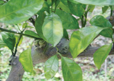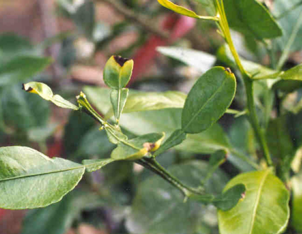 ◦ 식물체내 이동이 늦어 생육이 왕성한 부분에서 주로 증상이 발생하며, 특히 부지화 또는 유목에서는 새순의 생장이 빠르지만 생장하는 만큼 칼슘의 흡수가 불량하면 순 끝이 말라 죽는 증상이 나타남