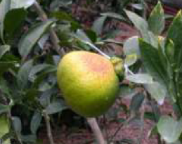 ◦ 과다 착과나 엽수 부족 등 수세가 약한 나무나 배꼽이 위로 향하고 과경지가 굵은 과실에서 발생하기 쉬움