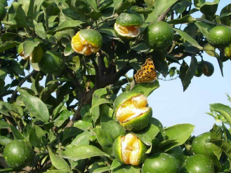 ◦ 9월경 과피와 과육조직 사이의 비대 속도가 맞지 않아 껍질이 쪼개지는 현상임