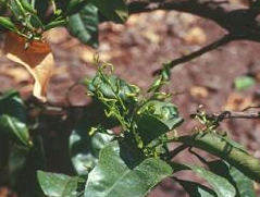 ◦ 특히 글라이포세이트(glyphosate)와 같은 제초제들이 식물체 표면에 직접 닿거나 토양에 집적되어 뿌리를 통하여 흡수하게 되면 마치 전형적인 바이러스 증상과 같이 새순이 가늘어지고 총생하게 되며, 꽃도 기형이 됨