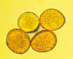 ◦ 담자균에 속하며, 하포자층은 잎 뒷면에 직경 0.1~0.5mm 크기로 형성, 하포자는 담황색 내지 담황갈색, 원형 또는 난형, 크기 18~25×15~18㎛, 동포자는 아직 발견되지 않았음