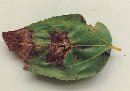 ◦ 처음에는 잎의 표면에 갈색의 원형반점이 나타나고 진전되면서 갈색의 부정형 병반이 됨