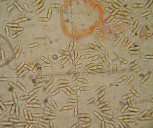 ◦ 불완전균에 속하며, 병자각은 구형 내지 편구형, 직경 120~160㎛, 병포자는 타원형 내지 난형, 무색, 2세포, 크기 7~10×3~4㎛임