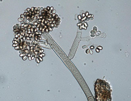 ◦ 불완전균에 속하며, 분생포자는 무색, 타원형 내지 난형, 단세포, 크기 6.5~ 18×4.5~10㎛, 균핵은 흑색, 부정형, 직경 3~6㎛임