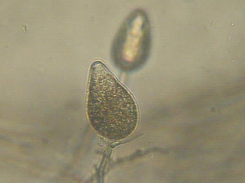 ◦ 편모균에 속하며, 유주자낭은 한쪽이 넓은 난형, 유두돌기는 P. citricola는 뚜렷하지 않으나 P. nicotinae는 뚜렷함