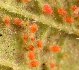 ◦ 잎당 2~3마리가 보이기 시작하면 적용약제를 살포하되 여름철에는 세대기간이 짧아지므로 저항성 응애의 출현을 고려하여 성분이 다른 약제를 교대로 살포