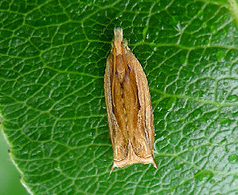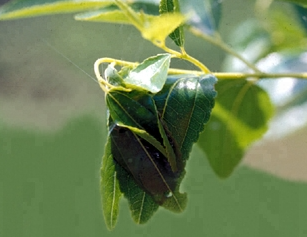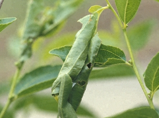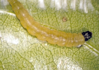 ◦ 유충이 잎을 여러개 함께 묶어서 철하고 그 속에서 식해하며, 또한 과실 겉면도 갉아 먹음