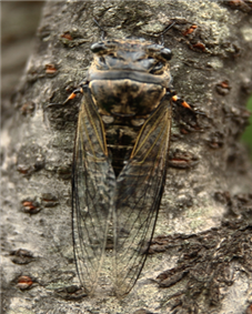 ◦ 노숙 약충은 7월 중순~9월 중순(최성기 8월 상순)에 땅 속에서 나와 성충이 되고 땅 속에서 나오는 시각은 대개 오후 6시~밤 12시(최성기 밤 8~10시)이며, 이 후 성충은 나무의 줄기를 흡즙하며 가지에 산란