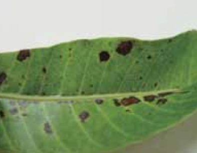 ◦ 잎에서는 수침상의 검은 반점이 생겨 점차로 켜져 각진 반점이 됨
