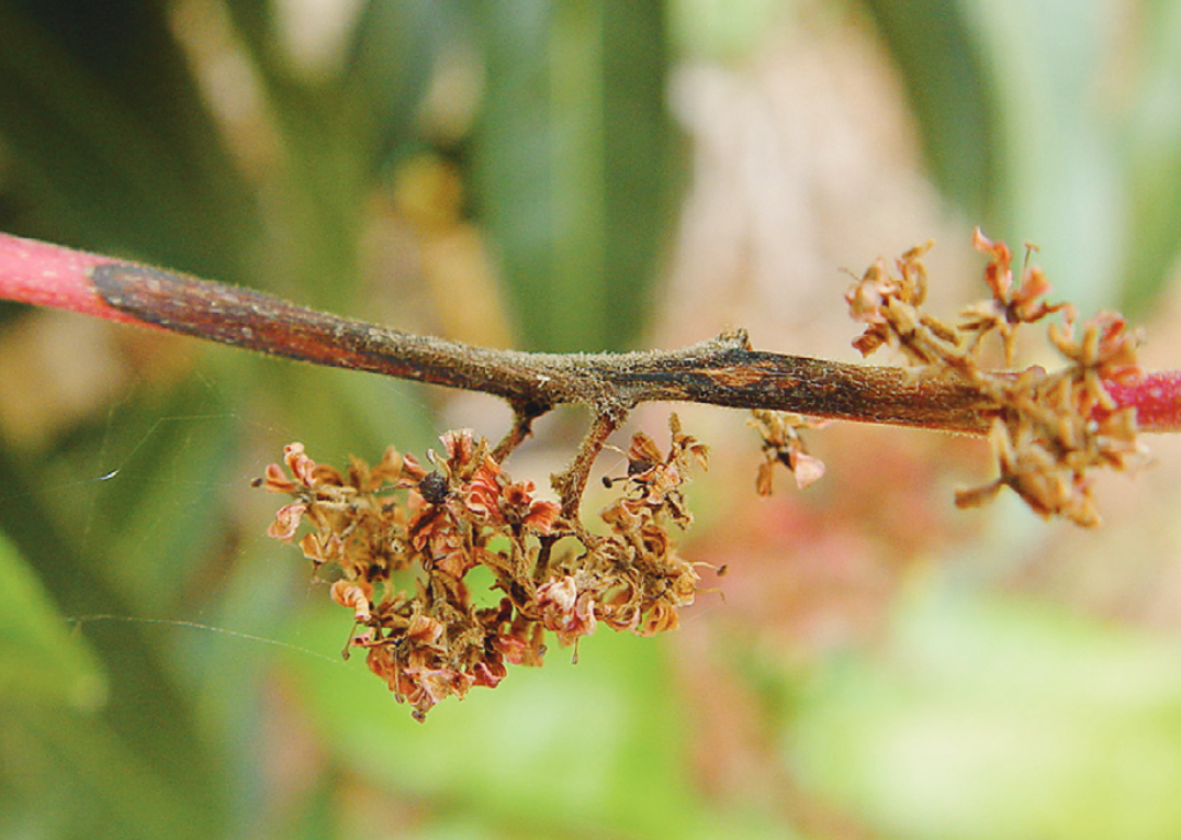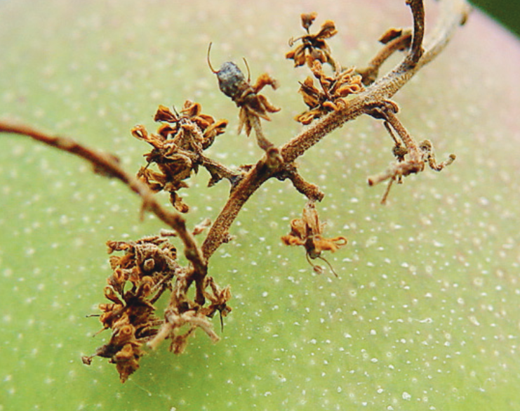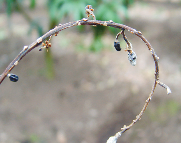 ◦ 잎과 가지, 과실에 발생하며, 특히 상처가 있거나 다른 병의 병반 부위에 복합감염되어 말라 죽음