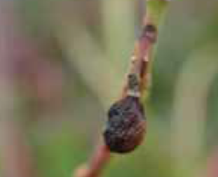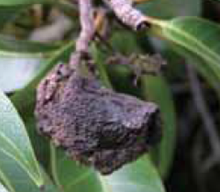 ◦ 감염된 과실은 나무에 달린 채 검은 포자에 둘러싸여 말라 버림
