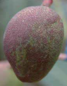 ◦ 과실 피해 증상은 유과기에는 다양하게 나타나며, 초기에는 암컷이 산란하여 과실 표면이 오돌도톨하게 나타나는 산란흔과 착색 불균형 현상이 나타나고 산란된 알에서 부화한 약충에 의해 장기간 피해를 받으면서 과실 전체적으로 갈변 또는 흑변 증상이 나타남