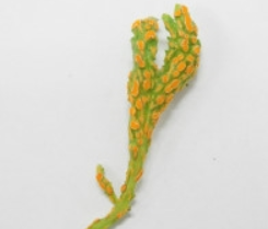 ◦ 피해 가지에 발생한 피해엽은 다량의 녹포자를 비산시키므로 등황색의 녹포자 비산 전에 잘라서 소각처리 함