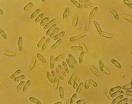 ◦ 분생포자는 무색, 단세포, 타원형 또는 원통형, 크기 12~22×4~7㎛임