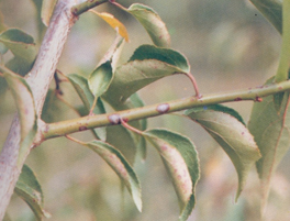 ◦ 줄기에서는 원형 내지 타원형의 적갈색 반점으로 나타나고 병반의 내부는 회백색으로 변색됨