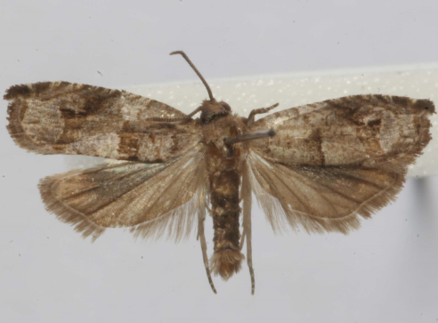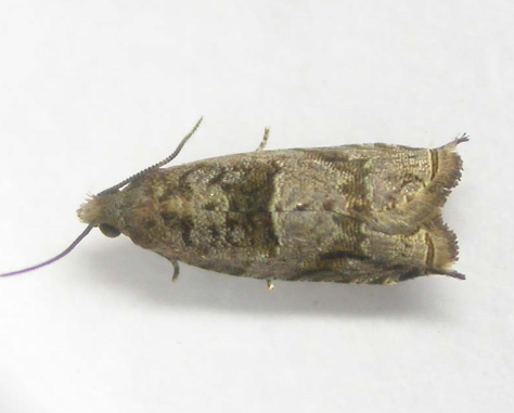 ◦ 성충은 날개 길이가 12~15mm로 몸과 앞날개는 회갈색이고 앞날개에는 흑갈색 무늬가 있음