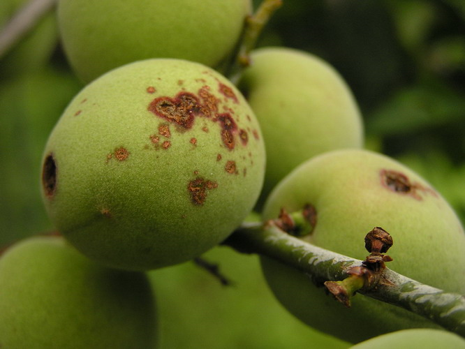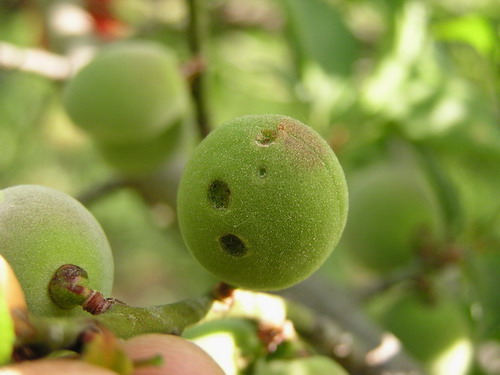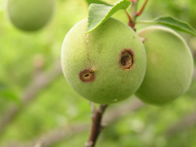 ◦ 우화한 성충이 잎을 갉아 구멍을 내거나 열매를 흡즙하는데, 피해를 받은 열매는 구멍이 나고 점차 커지면서 주위가 검붉게 변하며, 병원균이 증식하기도 함