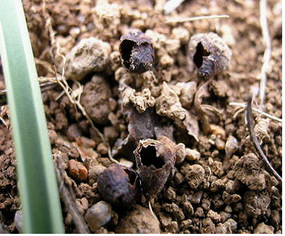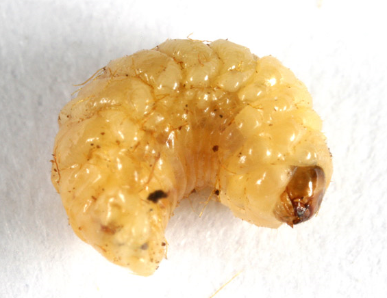 ◦ 부화한 유충이 꽃눈 속에서 가해를 하면 피해를 받은 꽃눈은 갈색으로 변하여 지면으로 떨어짐