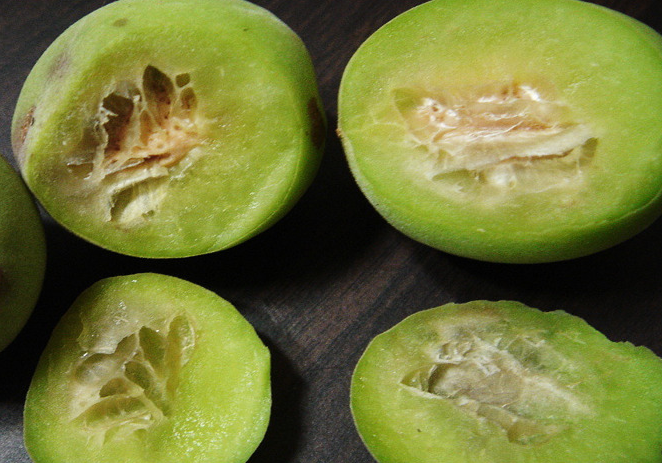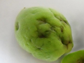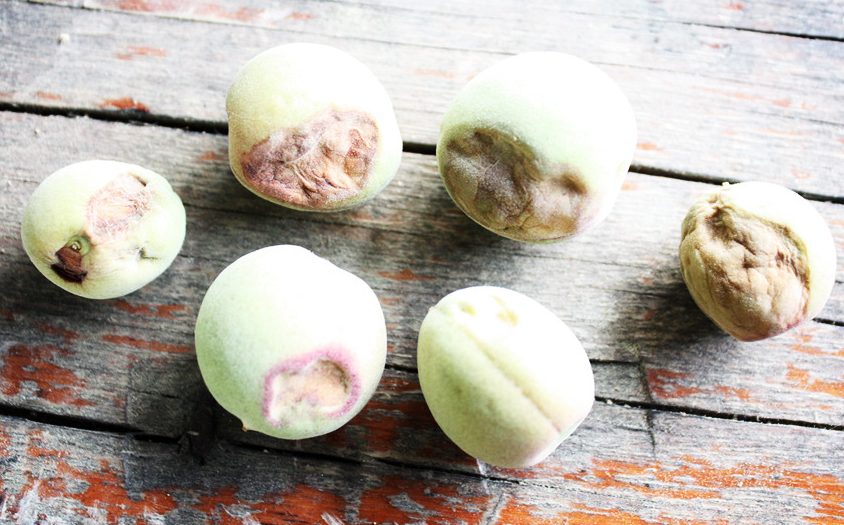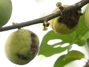 ◦ 과실비대기인 5월 하순에서 6월 상순 사이에 과실의 한쪽 부위가 푹 꺼지고 함몰해 쭈글쭈글해지며 낙과됨