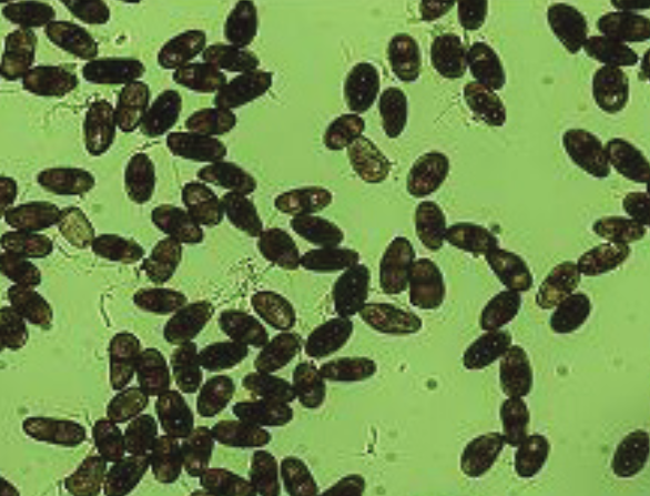 ◦ 불완전균에 속하며, 병자각의 크기는 130~360×130~210㎛, 병포자는 암갈색, 2세포, 크기는 17.5~27.5×10~12.5㎛임
