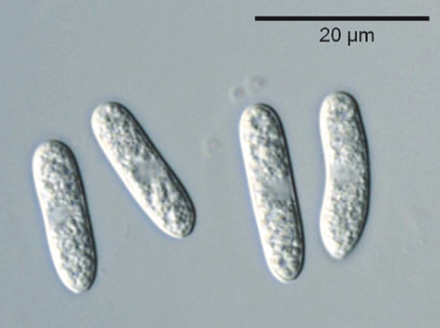 ◦ 분생포자는 무색, 단세포, 타원형 또는 원통형, 크기 12~22×4~7㎛임