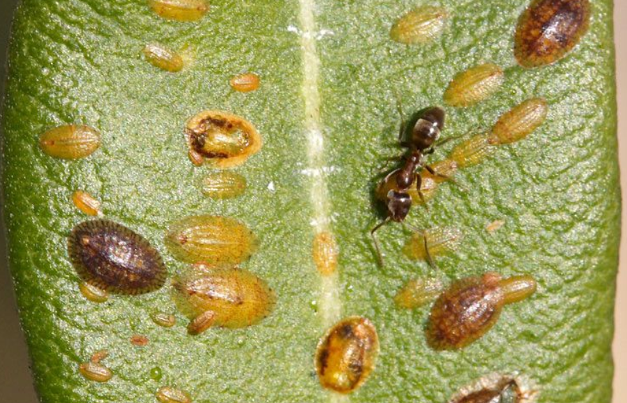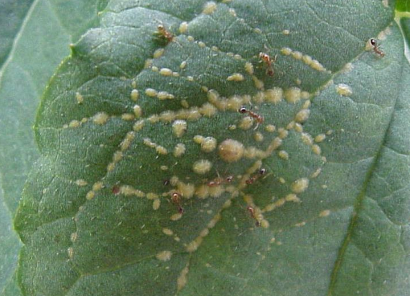◦ 주로 잎 뒷면이나 연약한 가지에 기생하며 흡즙 가해하며, 피해 잎은 황화하여 조기 낙엽됨