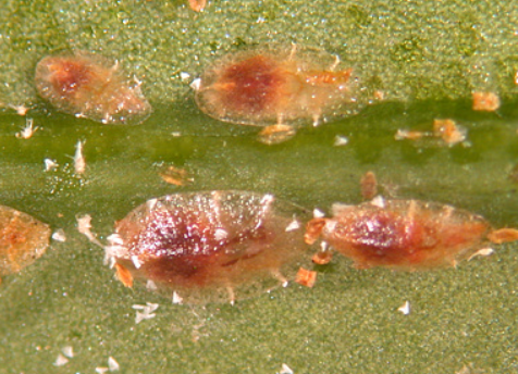 ◦ 등록된 약제는 없으나 복숭아의 뽕나무깍지벌레에 등록된 약제를 이용하여 약충이 발생하는 시기에 방제하되 약해 등에 유의함
