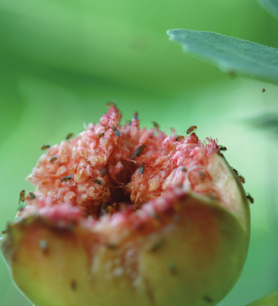 ◦ 수확적기의 완숙된 과정부의 열려 있는 구멍으로 초파리가 침입하여 산란하여 유충이 가해하고 과일 속에서 번데기가 되며, 이러한 과일은 쉽게 부패할 뿐만 아니라 상품가치가 없음