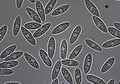 ◦ 분생포자는 무색, 단세포, 타원형 또는 원통형, 크기 12~22×4~7㎛임