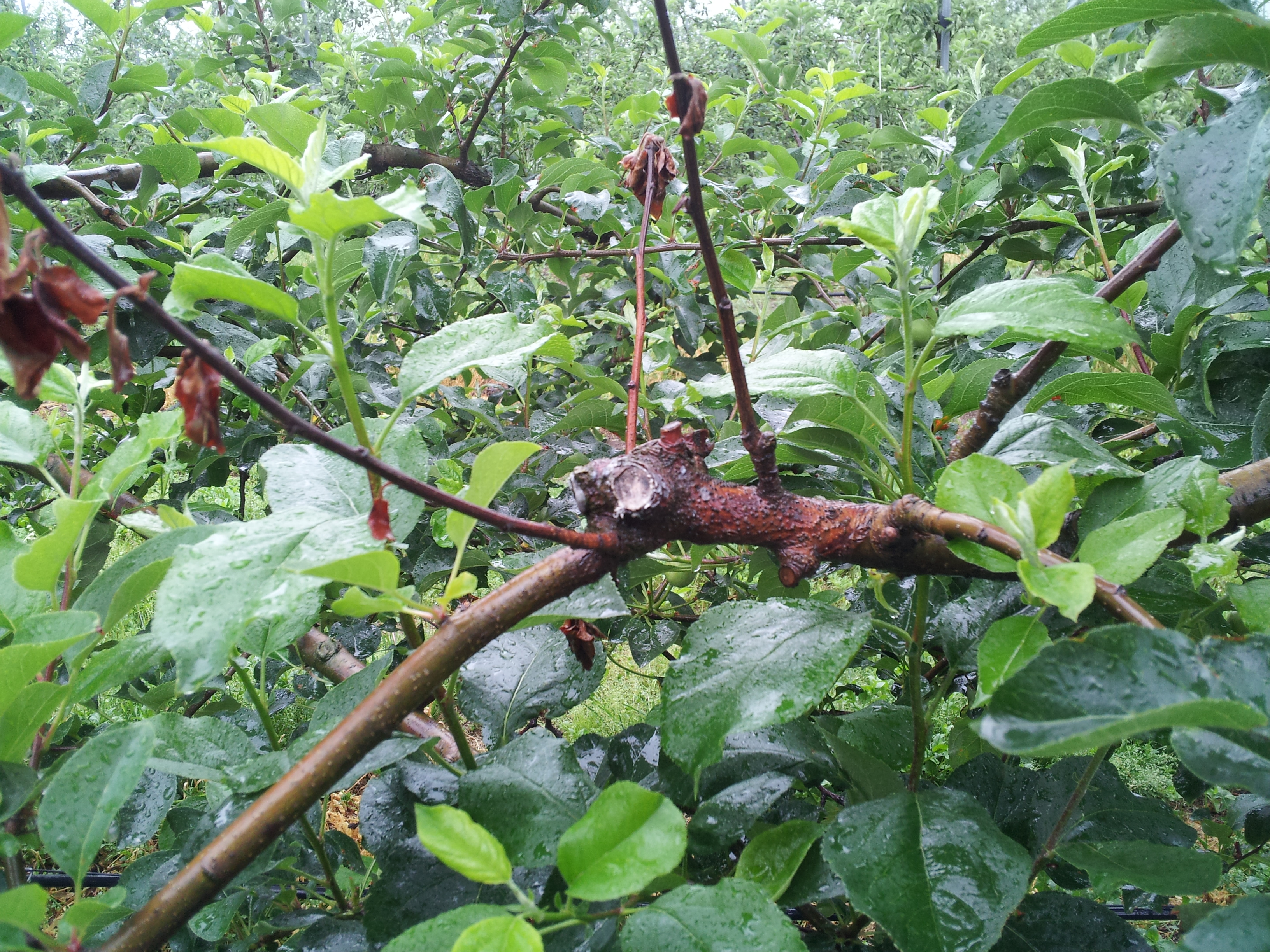 ◦ 병든 가지는 잘라내어 소각하고 굵은 가지는 병환부를 깎아내고 도포제(톱신페스트(나1) 등)를 바름