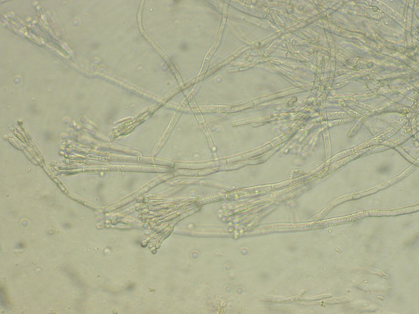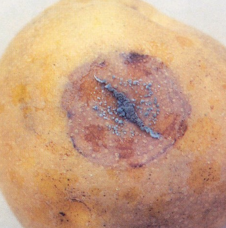 ◦ 처음에 담갈색의 병반이 형성되고 진전되면 표면에 백색의 균사가 형성되며, 점차 푸른색으로 변함