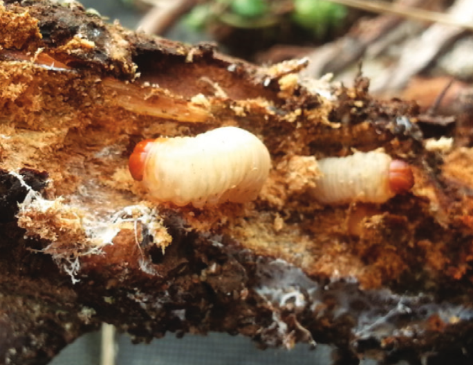 ◦ 6월 중순에 짝짓기를 한 암컷은 수세가 약한 나무의 껍질 밑에 알을 낳고 부화한 유충이 나무 속을 파먹고 자라며, 외부로 톱밥을 배출하므로 피해를 쉽게 식별할 수 있음