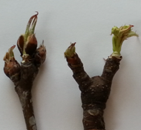 ◦ 신초 및 2년생 이하의 가지는 저온에 대한 저항성이 약하고, 특히 선단부는 생장이 늦게까지 진행되어 조직이 충실하지 못하기 때문에 눈, 피층, 형성층 등의 피해가 큼