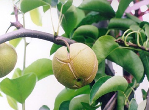 ◦ 과실의 성숙 촉진을 위하여 6월 중순부터 하순까지 저농도의 에스렐을 엽면살포할 경우 살포 농도가 높거나 시기가 늦어지면 이십세기와 신수 품종에서 상당한 열과가 발생함