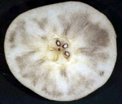 ◦ 사과의 경우 과숙한 과실에서 많이 발생하고 가을에 낮은 야간온도는 과실의 성숙을 촉진시켜 밀 증상이 증가되며, 개화기 가뭄에 의해 뿌리의 칼슘 흡수가 불량한 경우, 과실 내 칼슘 함량이 낮은 경우, 과실 내 질소와 붕소의 함량이 높은 경우, 과다하게 적과한 경우, 채광조건 또는 광노출이 심한 경우, 에스렐을 살포한 경우, 주지나 결과지 모지를 환상박피한 경우, 성숙기에 가뭄으로 수분이 부족한 경우에 발생이 증가함