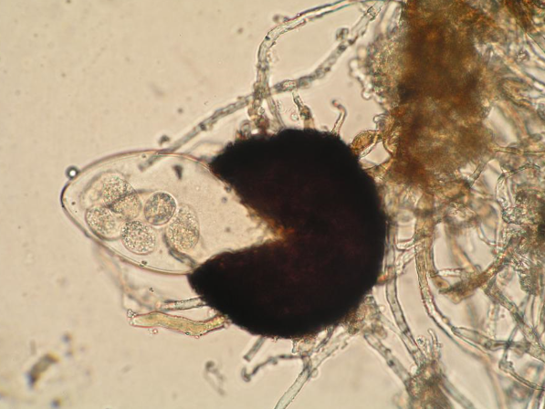 ◦ 자낭균에 속하며, 자낭각은 흑색, 준구형, 직경 85~120㎛, 끝이 꼬부라진 사상의 부속사 형성, 자낭포자는 무색, 단세포, 크기 20~27×12~15㎛임