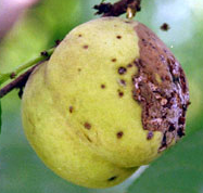 ◦ 병이 발생하기 전에 예방위주로 방제하는 것이 좋으며, 열과가 생기기 않도록 재배법을 개선하고 이병과는 즉시 제거함