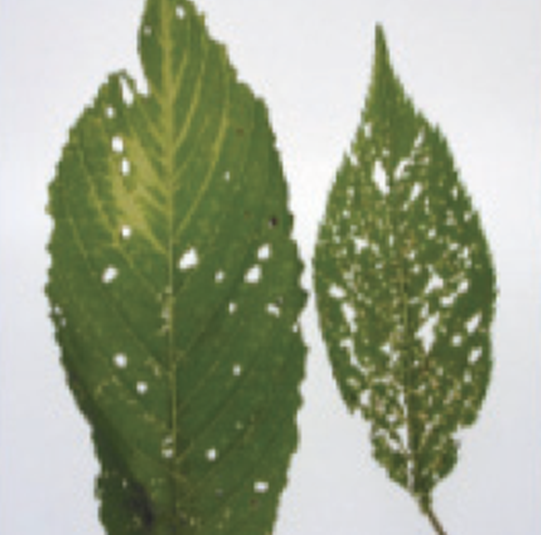 ◦ 품종에 따라 잎의 맥을 따라 괴사반점이나 작은 구멍들이 나타나지만 대부분 잠복 감염되어 무병징인 경우가 많음