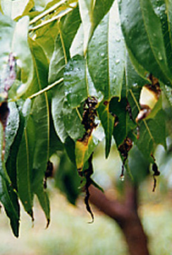 ◦ 잎, 신초, 과실 등 모든 부위에 침입하여 병을 발생시키나 줄기에는 발생이 흔하지 않은 편임