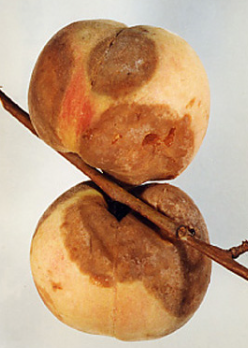 ◦ 과일에는 명확하지 않은 갈색의 큰 병반이 희미하게 퍼지는데 비교적 단단하고 병든 과실은 쉽게 떨어지며, 약한 알코올 냄새가 풍기기도 함