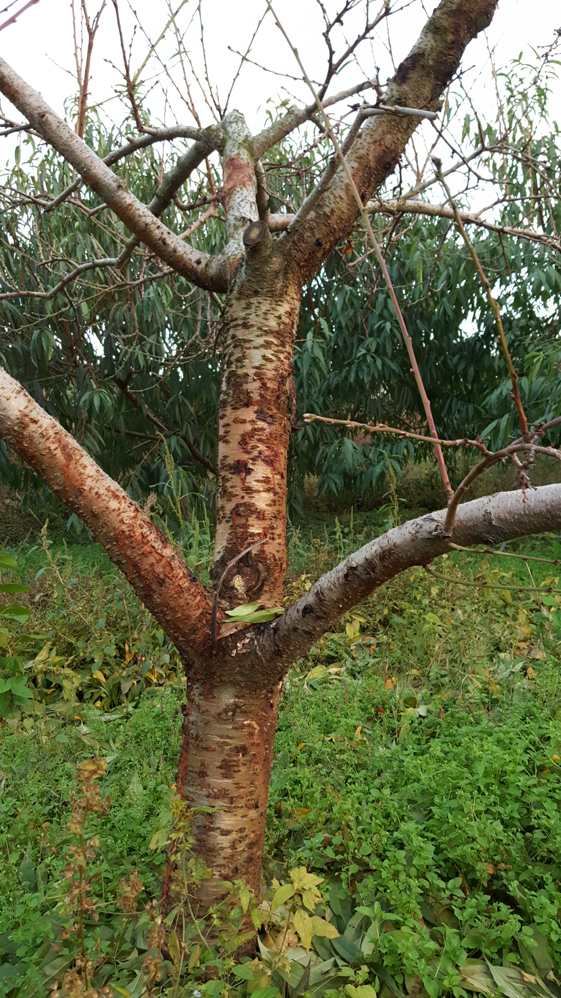 ◦ 녹물수지 증상이 나타난 나무는 금방 고사하게 되므로 가급적 일찍 제거하고 새로 나무를 식재를 할 때는 두둑을 높이고 토양살균제인 플루아지남 분제(후론사이드(다5) 등)를 토양혼화 처리한 다음 식재함