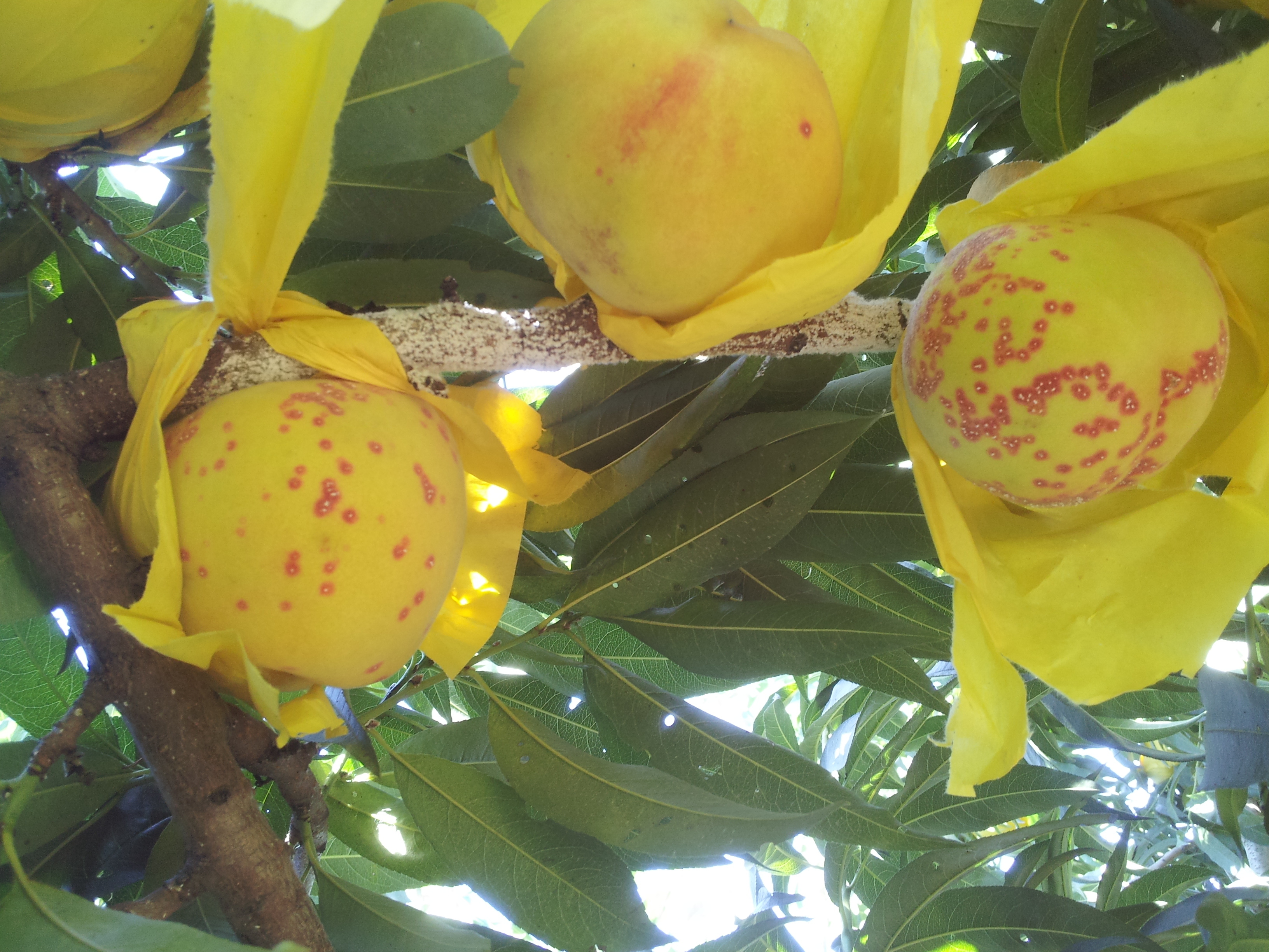 ◦ 흰색의 비늘이 빽빽이 붙어 있는 듯이 보여 쉽게 구별되며, 과실에서는 피해를 받은 부위에 붉은 반점이 형성됨