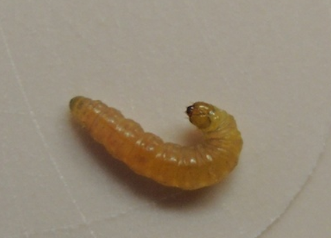 ◦ 부화한 유충은 머리가 크고 흑갈색이고 가슴과 배는 유백색이며, 노숙유충은 황색이고 머리는 담갈색이며, 몸 주변은 암갈색 얼룩무늬가 일려로 나 있음