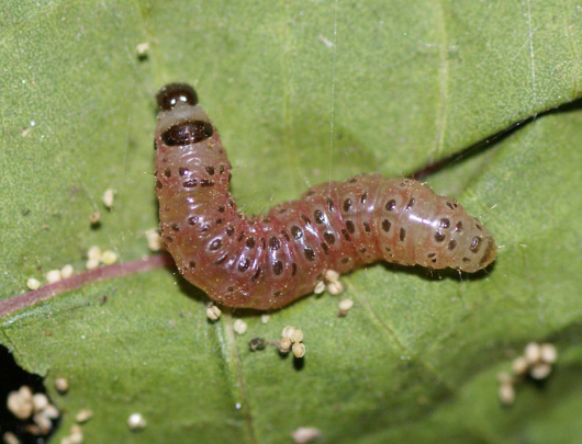 ◦ 유충은 다 자랐을 때 길이가 25mm 정도이고 각 몸마디 마다 흑색점과 긴털이 나 있음