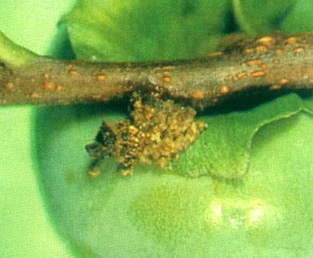 ◦ 유충이 과실을 가해하고 침입한 큰 구멍으로 적갈색의 굵은 똥과 즙액을 배출하므로 다른 심식충의 피해과와 쉽게 구별