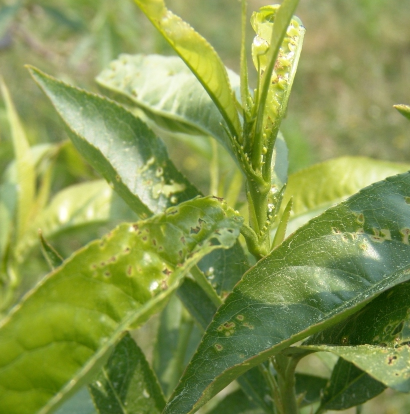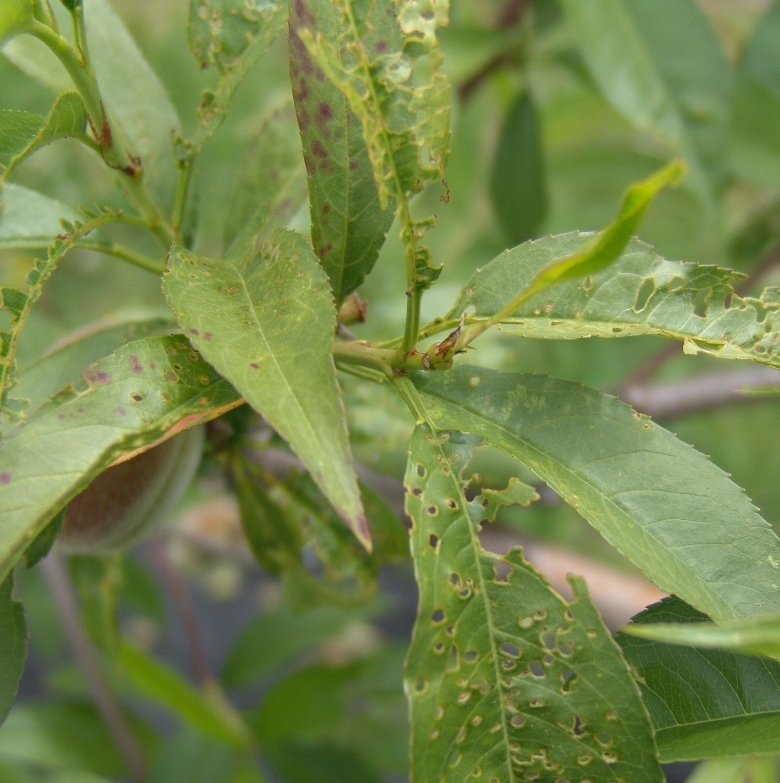 ◦ 1세 성충은 5월 하순~6월 상순, 2세대 6월 하순~7월 중순, 3세대 8월 중순, 이후 1~2세대 더 발생하며, 복숭아 피해는 1세대 성충까지이고 그 이후에는 가지나 감자 등으로 이동하여 해충을 발견하기 어려우며, 10월 중순경 복숭아로 이동하여 월동 알을 산란함