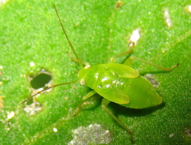 ◦ 알에서 부화한 약충은 약 1mm이고, 중간 약충은 2~3mm, 다 자라면 4mm 정도이며 옅은 녹색임