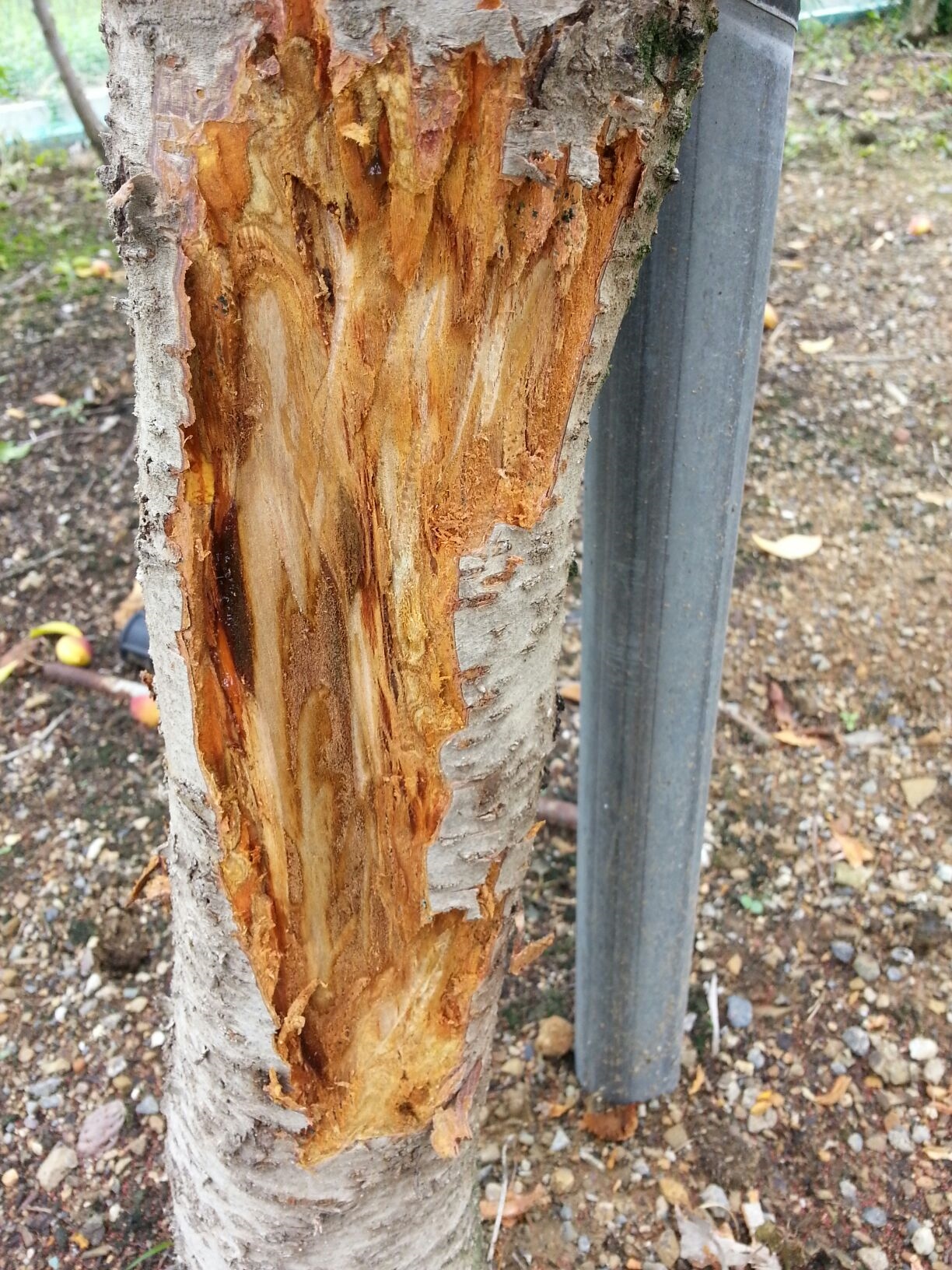 ◦ 봄에 진한 석회액을 줄기에 발라 보호해 주며, 피해 부위는 깎아낸 다음 도포제(톱신페스트(나1), 실바코(사1) 등) 등을 발라줌